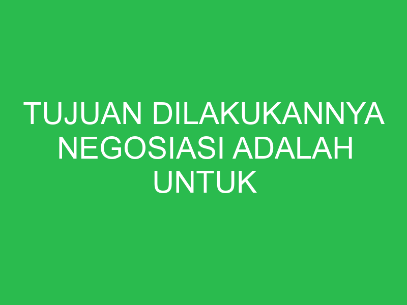 Tujuan Dilakukannya Negosiasi Adalah Untuk Mencapai