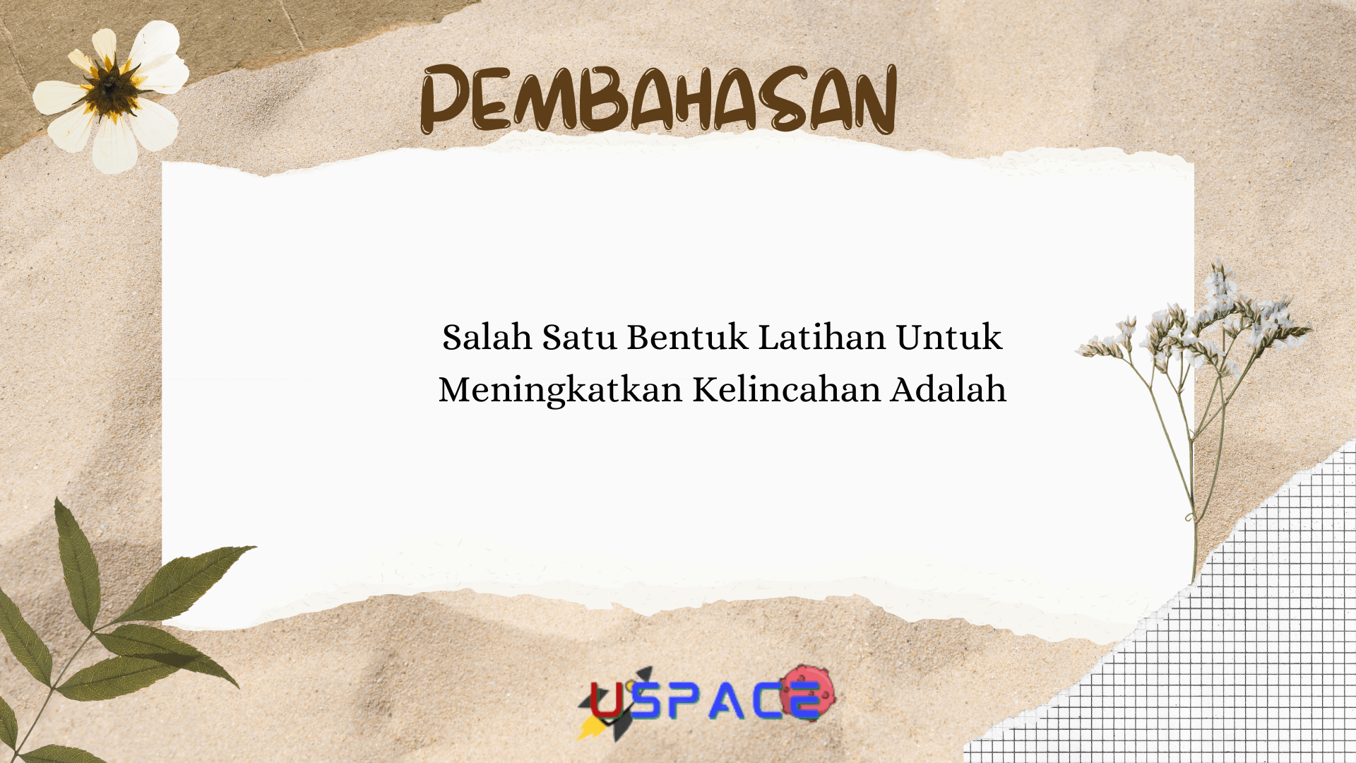 Selamat datang di Uspace.id, blog untuk berdiskusi seputar pembahasan soal pelajaran dari SD, SLTP, SMU Sampai Perguruan Tinggi. Kali ini kami akan bahas sebuah pertanyaan yang banyak di tanyakan di Soal Ujian Sekolah, Pertanyaannya adalah : Salah Satu Bentuk Latihan Untuk Meningkatkan Kelincahan Adalah