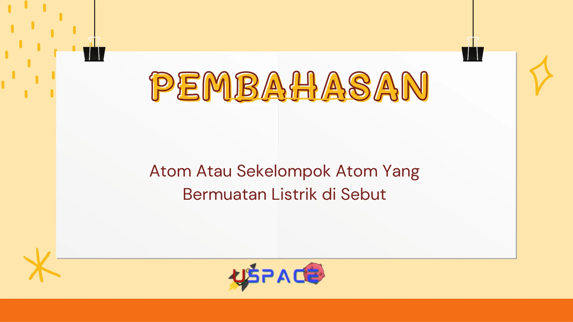 Selamat datang di Uspace.id, blog untuk berdiskusi seputar pembahasan soal pelajaran dari SD, SLTP, SMU Sampai Perguruan Tinggi. Kali ini kami akan bahas sebuah pertanyaan yang banyak di tanyakan di Soal Ujian Sekolah, Pertanyaannya adalah : Atom Atau Sekelompok Atom Yang Bermuatan Listrik di Sebut