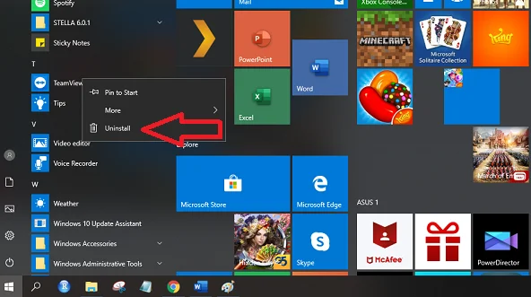 - Cari aplikasi yang ingin di hapus pada daftar aplikasi yang muncul di Start Menu.